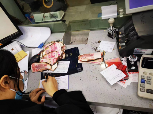 “你好,我家里发生火灾,抽屉里的现金被火烧了一半,请问你们银行可以兑换新钞吗?”1月18日,周先生风尘仆仆地赶到中行丽水庆元支行营业厅,手中拿着一叠烧毁的人民币现金,看起来有些急切。