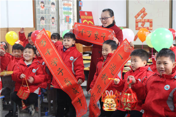 开学第一天,群英学校“新春开学主题日”活动让返校的孩子们喜笑颜开。“年文化”手工作品展示、特殊的新学期签名仪式、猜灯谜抽新年“红包”、墨香四溢书福字、心灵手巧剪福字、小记者现场采访……