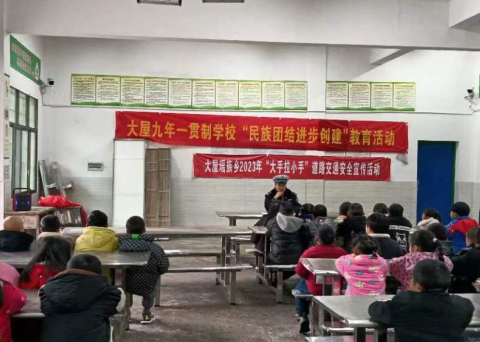 为进一步提高广大人民群众的交通安全意识和守法意识,切实抓好道路交通事故预防工作,近日,山门交警中队组织了大屋瑶族乡2023年“大手拉小手”道路交通安全宣传教育活动。