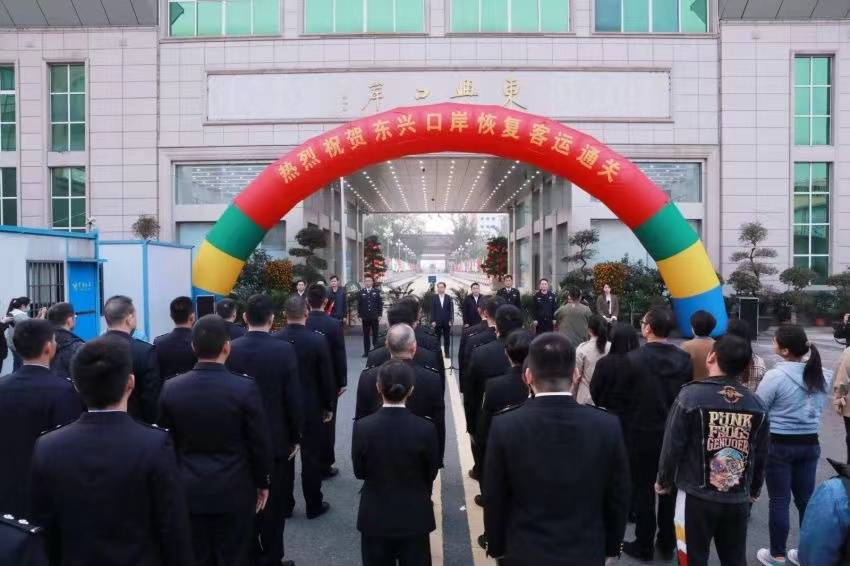 根据东兴市商务和口岸管理局发布的公告,经东兴口岸(一桥)出入境人员,只要持有效出入境证件,如实填报《出入境健康申明卡》,入境人员需有48小时内核酸检测阴性证明就可以正常通关。口岸恢复客运通关给两国边民带来了更多的便利,许多边民持《边境出入境通行证》通关,前往一河之隔的越南芒街市经商、探亲、访友,甚至是吃一份跨国早餐。不少越南边民也在恢复通关的第一时间入境,来到阔别已久的东兴市逛街购物、会友游玩。