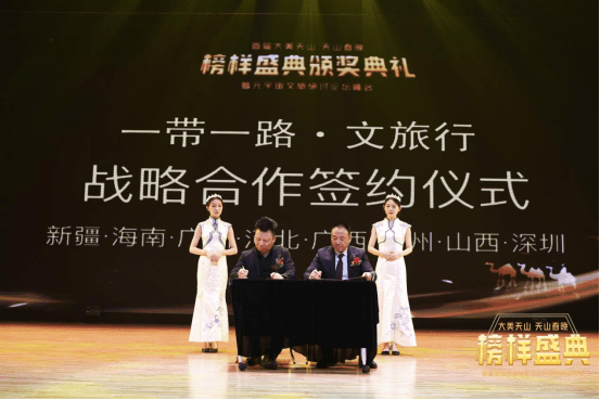 中国演出行业协会副会长兼秘书长潘燕表示:“新疆有着非常丰富的旅游资源和文化资源,发展空间巨大,行业组织把握机遇则大有可为。首届“大美天山 天山春晚”活动工程为下一步更广范围的聚合资源、互联互通,凝聚全国力量开了一个好头。未来,中国演出行业协会也将继续支持自治区文化市场发展促进会的各项工作,发挥全国协会会员体系的聚合优势,支持新疆文旅市场建设。望业界同仁将更多的优秀文化产品互动交流,形成全国一盘棋,谱写一带一路十周年文旅融合新篇章,共同努力促进文化和旅游产业的提档升级高质量发展。” 新疆与海南一带一路文旅行战略签约