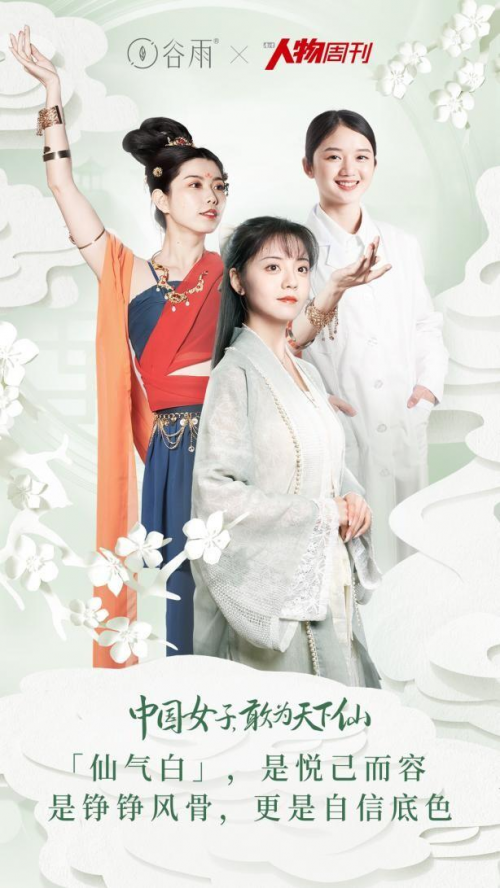 谁说国货没有内涵只会谈性价比? 质优价廉是很多人对国货的初始印象,但深挖下来我们会发现,国货的美不只在于性价比高,也在于其丰富的文化内涵。 在东方文化当中,描述女子气韵最传神的一个字就是——仙,“仙”字内外兼修,即诠释了东方女性内在的灵动洒脱、尊贵高洁,又描述了东方女性外在的体态优雅、玉肌如雪。随着时代的发展,东方女性的“仙”,不断被赋予新的内涵:“仙”是东方女子勇于追求自我、敢于拼搏向前的底色。 谷雨从传统东方美人的形象中,提炼出了中国式“仙气白”的审美追求。即我们所追求的中国式古典美,是温婉大气、古典优雅、端庄谦和的,而“仙”之一字如今的内涵得以延展,更多体现于品格之上,或形容侠肝义胆,或看似出尘于世却有着自身的理想与坚持。谷雨将这些美好的品格与现代女性独立自主的品德相融合,与《南方人物周刊》共同合作提出了“敢为天下仙”的现代中国女性形象追求,将“仙气白”的新古典审美具象化,赋予了中国美人以贯古通今的全新内涵。