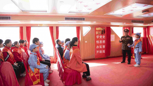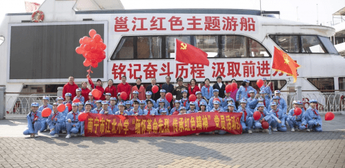 上午8时许,该校党员、共青团员、少先队员代表踏着整齐队列,从学校出发,浩浩荡荡来到邕江码头,寻访红色印记,传承红船精神。老战士彭武烈给大家讲述革命先辈们为了民族解放而抛头颅、洒热血的峥嵘岁月,鼓励少先队员们好好学习,牢记党的奋斗历程和辉煌成就,传承和弘扬抗战老兵革命精神,长大报效祖国;激励党员、团员教师,认真学习老战士顽强拼搏、不懈奋斗,忘我奉献的革命精神,传承红色基因,赓续红色血脉,全力以赴推动教育事业发展。党员老师们在码头“红船”上,在老战士的见证下重温了入党誓词。