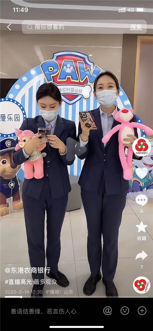 创新“银行直播”,提供足不出户的金融服务。为践行普惠金融,向客户提供多渠道、多方式、足不出户的金融服务,东港农商银行组建“网红工厂”,选拔业务能力强。形象气质佳的员工,通过直播平台向客户进行线上金融知识普及及产品介绍,彻底打通与客户沟通渠道。客户通过观看直播,即可通过互动聊天区咨询业务及金融知识,真正将金融服务送到客户家中。目前该行已开展直播9场,吸引1万余人观看,线上答复客户咨询问题300余次,取得了较好的宣传效果。