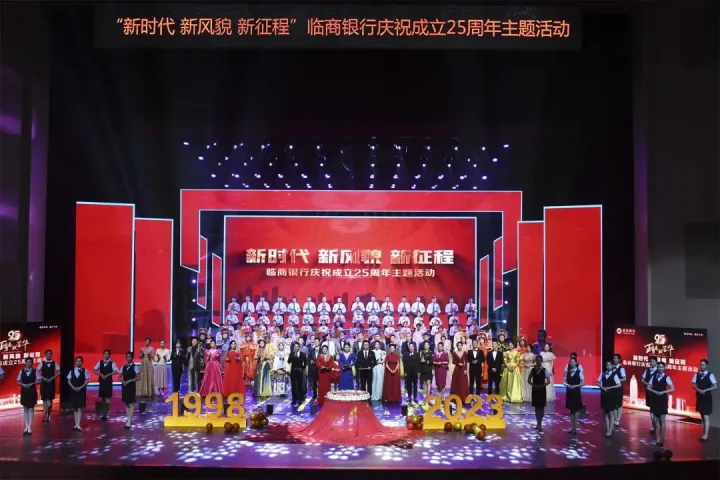 25年芳华如歌,从滔滔沂河畔到巍巍蒙山,汇聚沂蒙大地的金融激情。25载同心笃行,以逐梦之心勇闯新路,谱写出沂蒙精神的红色诗篇。 2月17日晚,临沂大剧院内欢歌笑语、掌声阵阵,容纳1100人的歌剧厅座无虚席,临商银行庆祝成立25周年主题活动圆满举行。市人大常委会主任、党组书记崔凤友,市政协主席、党组书记边峰,市委常委、宣传部部长、教育工委书记张晓彬,市政协副主席张玉兰,市委副秘书长、市直机关工委书记熊长远,市政府副秘书长葛龙江,市总工会党组书记、常务副主席王剑锋,以及市妇联、财政局、退役军人事务局、审计局、地方金融监督管理局、税务局、人民银行的部分领导和客户代表、临商银行领导班子全体成员在现场参加主题活动,活动还通过网络同步进行直播,超过20万人次观看。 ![]() 不畏浮云遮望眼,一路长虹向前行。从1998年到2023年,临商银行25年凝心聚力、同心同行,跨越企业文化传承。本次主题活动以“新时代 新风貌 新征程”为主题,分为三个篇章进行。 ![]()