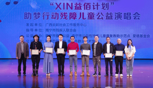 当晚,一场特别的演唱会在南宁市群众艺术馆拉开帷幕,一群可爱的“折翼天使”以歌为马,勇毅笃行在这个美丽的夜晚为我们带来一场别开生面的演出。 这是一场具有特殊意义的演唱会,是一场为残障儿童搭建了实现梦想的演唱会,是一场用音乐托起孩子们的梦想的演唱会。演唱会的主角是来自广西云彩的邓宁艳小朋友和她的小伙伴们,孩子们的歌声也许不是那么动人,但是他们是用“心”在歌唱;孩子们也许不善于跑跳,但是他们是用“心”在舞蹈,他们的梦想是在音乐的世界中走得更远! 本次演唱会由南宁市蚕豆公益、南宁市公益性残疾儿童康复求助示范点、爱德基金会公益承办。演唱会还得到了阿里巴巴公益的公益支持以及南宁市群众艺术馆以及很多爱心人士的热心支持。南宁市残疾人联合会党组成员、副理事长黄长志及阿里巴巴公益平台项目运营专家刘林花出席活动并发表致辞。