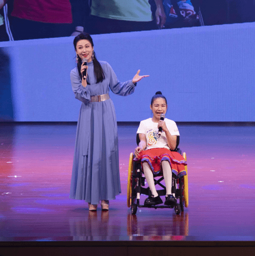 “我终于看到所有梦想都开花,追逐的年轻歌声多嘹亮;我终于翱翔,用心凝望不害怕,哪里会有风就飞多远吧……”广西云彩邓宁艳小朋友为大家演唱了《隐形的翅膀》,坐在轮椅上自信又从容的小小身影,深深打动了在场的每一位观众。宁艳说她喜欢唱歌,因为歌声不仅给她带来欢乐,更是给她带来勇气和力量!