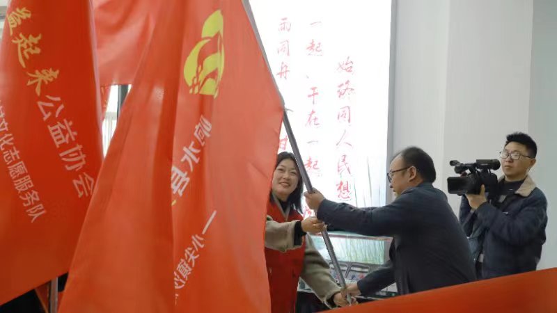 江苏省响水县小尖镇举行公益志愿者成立授旗活动