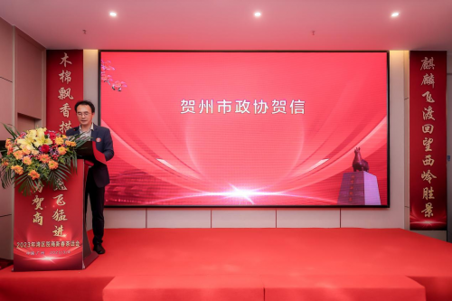 随后,秘书长奉重耳宣读了贺州市政协发来的贺信。贺州市政协对贺商新春茶话会的召开表示热烈祝贺,贺信中强调,贺州市政协将一如既往的关心、支持贺商在湾区的发展,同时,希望湾区政协委员继续发挥委员联络平台、桥梁纽带作用,画出最大同心圆,为促进粤桂两地的经济发展、乡村振兴作出更大贡献。