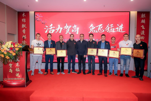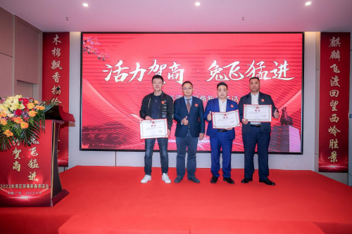 广州市南沙区土地开发中心副主任魏山祥作为贺州在粤工作领导代表上台讲话。他结合自己在粤工作近四十年的经历,畅谈了两广合作交流的重要性,他说两广同根同源,希望富川商会会员在发展企业的同时,要予以家乡发展更多的关注。 富川商会在招商引资服务家乡的同时,还大力加强商会建设,会员队伍不断壮大,优秀青年脱颖而出。 经过考核和评选,孔维龙、杨俊城、杨名宣、李小健、周有华、莫任长、杨天奇、宋瑞平共8名会员获得富川商会2022年度“杰出贡献奖”;岑天禄、刘广栋、杨长洪、廖玉权、蒋科、黄建盛、邓德保、杨春松、曾庆全、翟佳虹、潘翠姣、林叁共12名会员获得富川商会2022年度“优秀会员奖”。执行会长孔维龙,常务副会长杨名宣,副会长莫任长、杨天奇、奉贞丽共5名会员走上了商会领导工作岗位;杨长高、林声英、蒋旭东、卢柯伊、欧阳志华、欧阳志佳、宋联财、翟佳虹、杨欢、陈汝刚、汤裴丹、李森科共12名新会员加入商会。