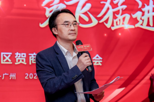 广西壮族自治区人民政府驻广州办事处党组成员、副主任伍金荣致辞。伍金荣首先肯定了广东省富川商会在各方面工作取得的优异成绩,他强调,2023年是全面贯彻落实党的二十大精神的开局之年,今年的自治区政府工作报告也明确提出了“推进贺州建设东融先行示范区”的目标。