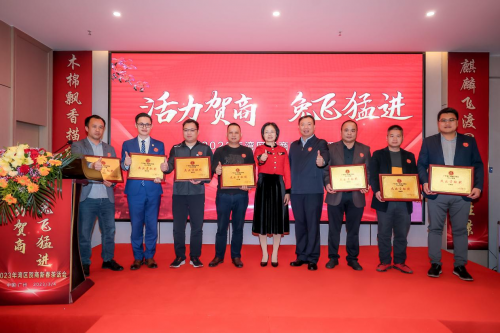 3月4日,由广东省富川商会主办的主题为“活力贺商,兔飞猛进”的2023年活力贺商新春茶话会在广州天河大厦隆重举行!来自广西区政府驻广州办事处,贺州市政协、工商联、投资促进和商务局、贺州市委统战部,富川县政协、工商联、投资促进局、富川华润示范区管委会等各级政府部门的领导,以及在粤贺州工商界人士和富川商会会员、富川乡贤等共计120余人参加了活动。