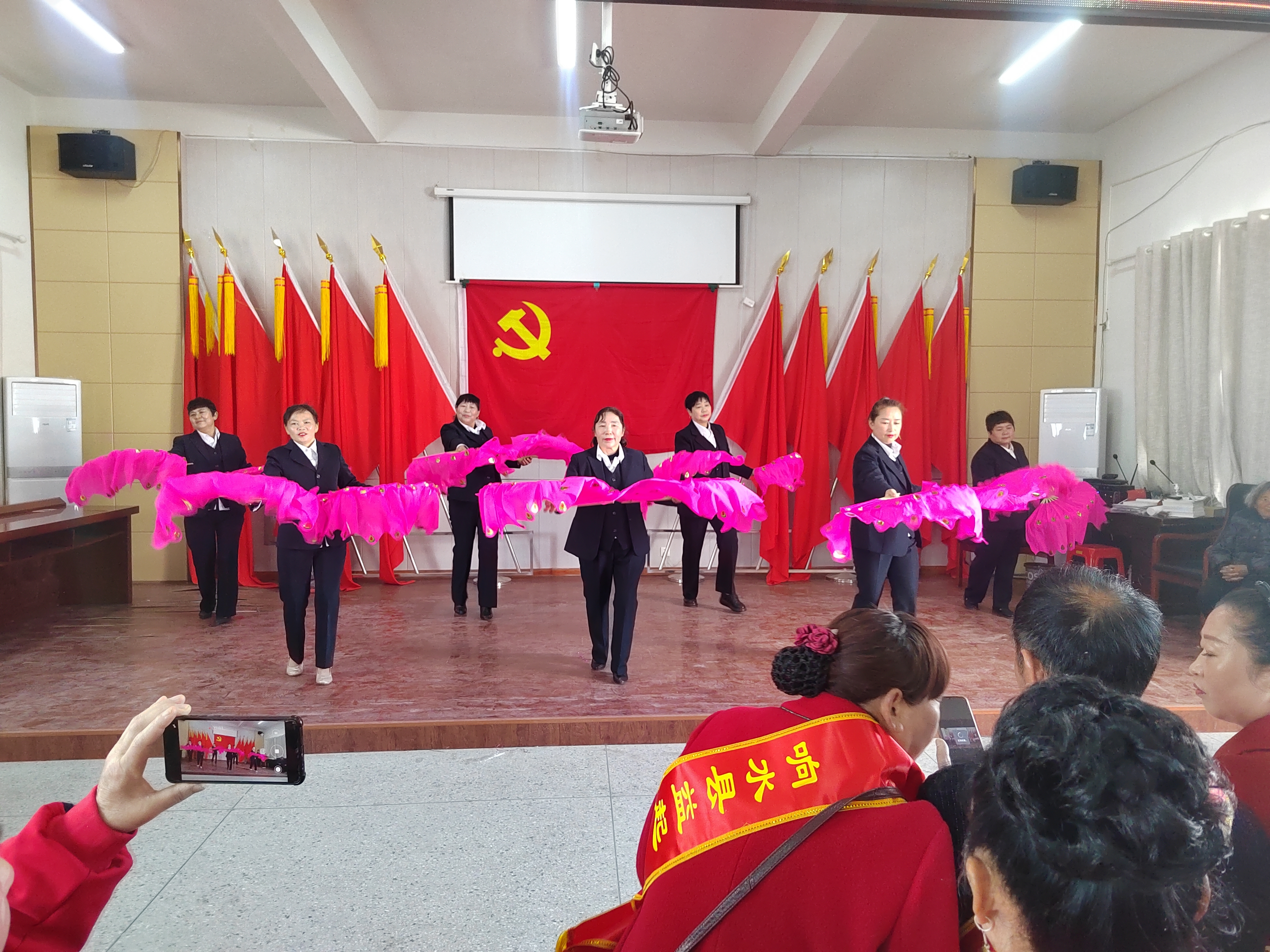 三八节时春意浓,八方佳丽共欢庆。为了使三八妇女节庆祝活动圆满举行,周集社区提前准备好了会议室,把最美的歌舞献给你,把最好的祝福带回家。姐妹们齐聚一堂,欢歌笑语传遍街头巷尾。