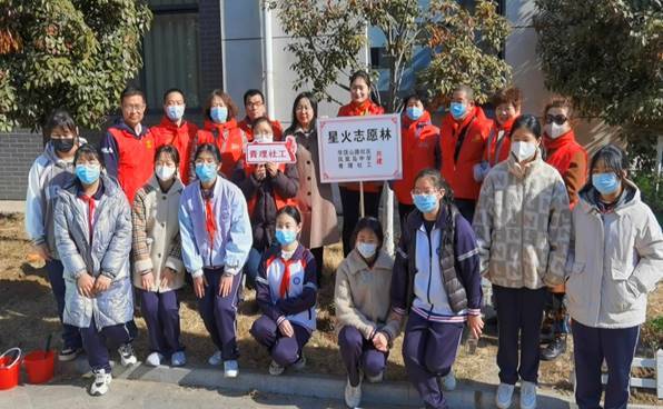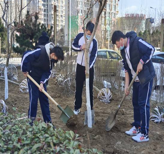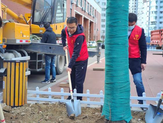 王秀栾(报讯)一年一度的植树节,凤凰岛初级中学党建引领添新绿。