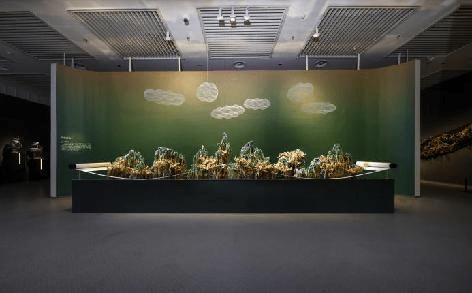 朱炳仁作品《图腾》 “同源”展区中,占地60㎡的一畦稻田自然舒展,仿佛置身江南水乡丰收场景。2012年,朱炳仁受老子《道德经》首句之义的哲学启示,“种”出熔铜艺术之稻。炽热的铜液,以晶莹的形态,在朱炳仁不断拓展的艺术边界中,也根植了他对人类生存与环境变化等现实主义关照与探索。