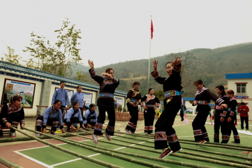 各族群众跳竹竿舞 “今天我们在桂黔六县中心天峨县下老乡圭里村举行“同心同德绘蓝图桂黔共谱和谐曲”主题活动,意义在于弘扬道德文化,传承民族精神。同心方能同舟共济,同德方能铸牢中华民族共同体意识。”广西社会道德文化研究会文化艺术委员会主任罗静说。(通讯员:林丽峰) |