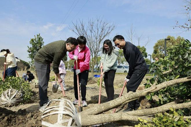 春天的犭央 犭茶湖波光粼粼,环湖路四周一片绿意葱葱,在湖畔的种植基地里,兴业银行绍兴分行近百名员工分工协作,干劲十足地挖坑铲土、扶苗培土,经过一个上午的忙碌,60多株树苗全部栽种完成。