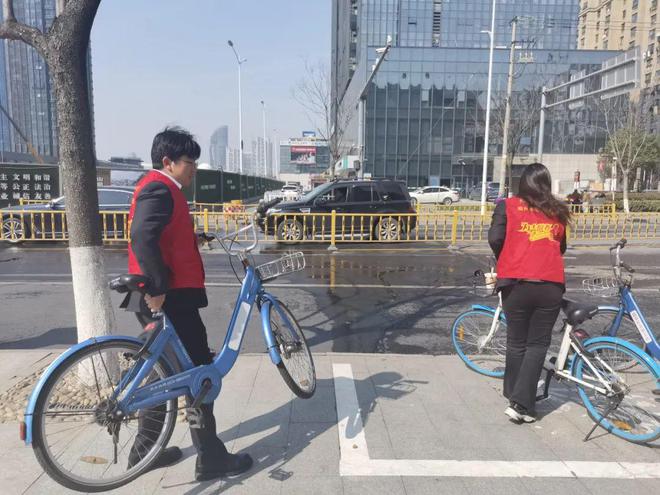 有序停放车辆 兴业银行绍兴分行团委积极开展“文明骑行 有序停放”志愿活动,青年员工深入街区,对路边沿线停放的共享单车进行有序摆放,逐一调整归位,对未按要求停放共享单车的行为进行劝阻。