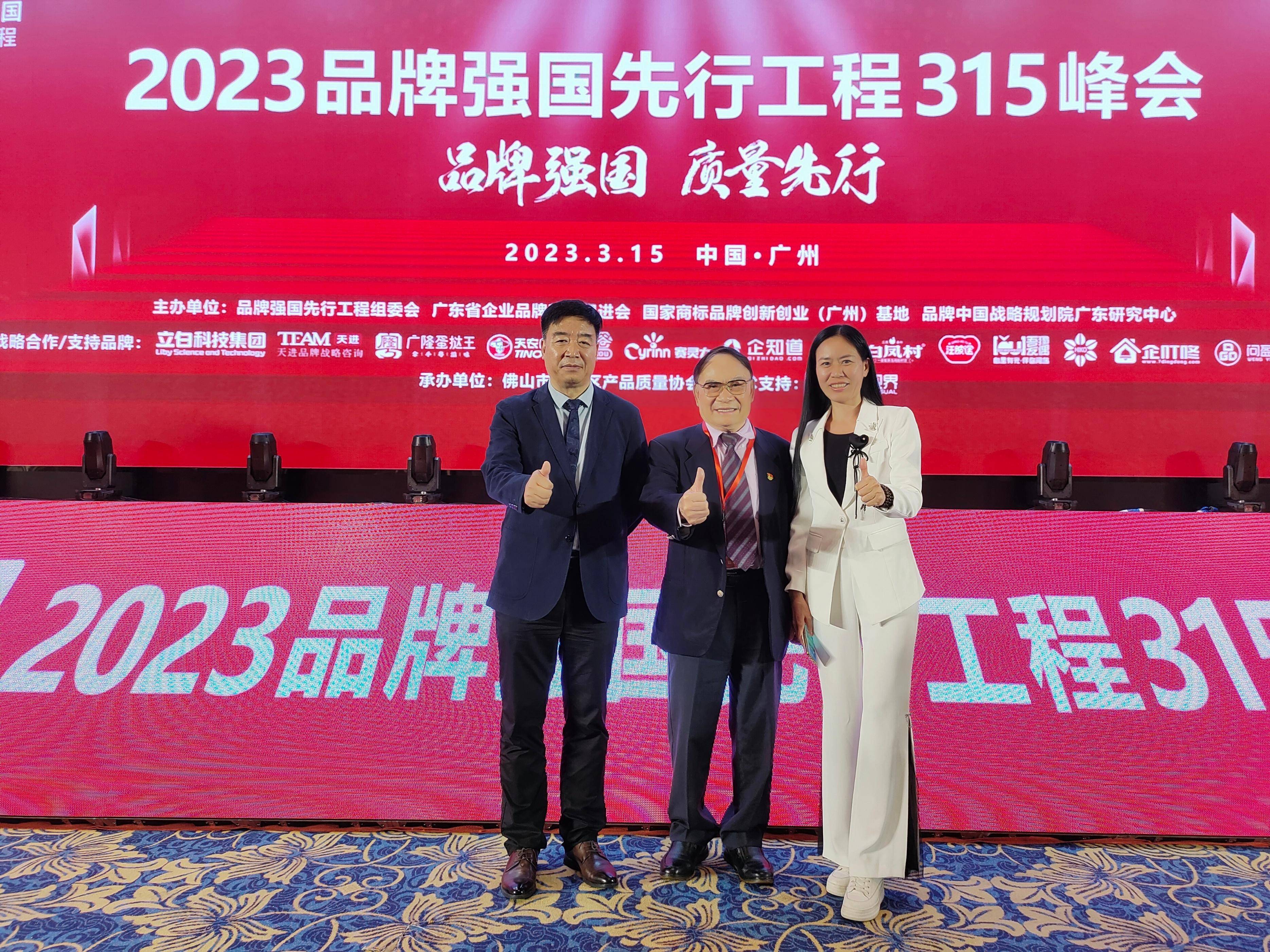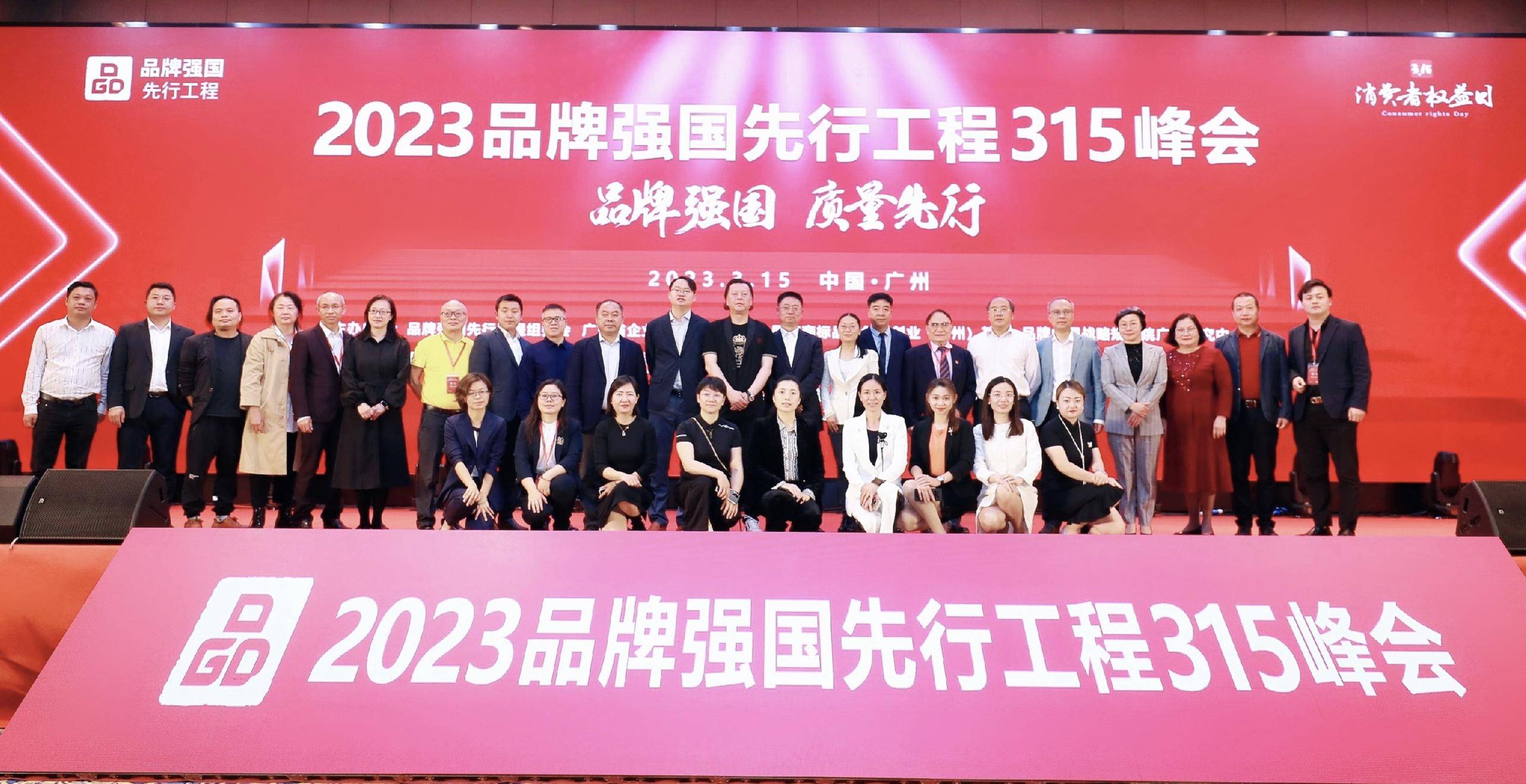 2023年3月15日,2023品牌强国先行工程315峰会在广州东方宾馆隆重举行。峰会以“品牌强国 质量先行”为主题,旨在贯彻落实《质量强国建设纲要》和广东全省高质量发展大会有关中国品牌创建行动精神,同时发布2023品牌强国先行工程联合倡议,引导品牌企业主动作为,倡议全社会共同守护消费者权益。