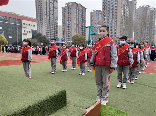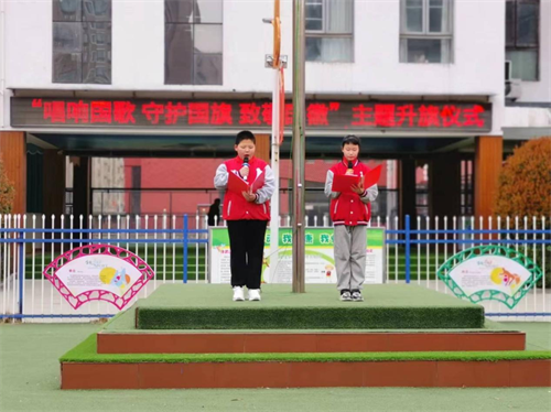 集团总校区的升旗仪式由学校红领巾宣讲团成员薛佑依、唐靖翔主持。