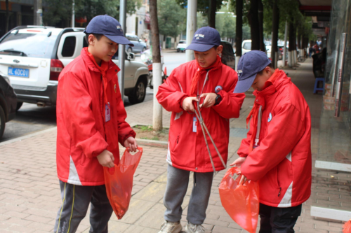 组织全体大队干部开展了整治校园周边环境卫生的“学雷锋”志愿活动。用实际行动响应“绿水青山就是金山银山”的生态文明理念,传承雷锋精神。