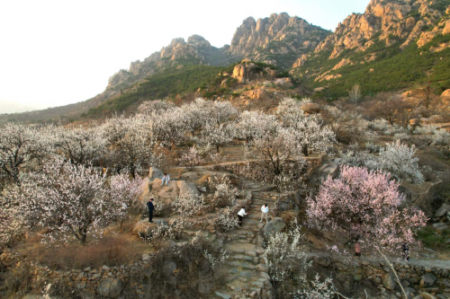 赏花线路二:C310路——驼石沟村赏杏花 驼石沟村坐落在马耳山西麓,地属五莲县松柏镇。诗云:沾衣欲湿杏花雨,吹面不寒杨柳风。步入古老的小山村,仿佛误入世外桃源。房前屋后,门道两旁,以及漫山遍野,全部是杏花的海洋。簇簇的粉白或妃红,将红瓦青砖掩映。这里有百年杏花林、民俗陈列馆、鸳鸯泉、杏树王……快来一起赏花踏青,探寻古村落里的诗与远方,邂逅一场不期而遇的杏花雨吧。