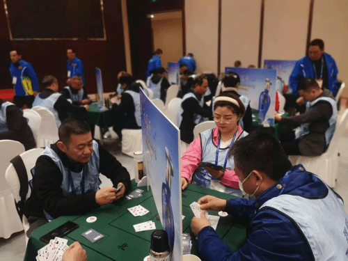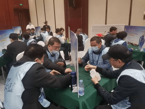 江苏省掼蛋运动协会会长漆冠山主持颁奖典礼。 “天之蓝杯”全国首届竞技掼蛋网络公开赛颁奖仪式结束后,举行了线下掼蛋友谊赛。