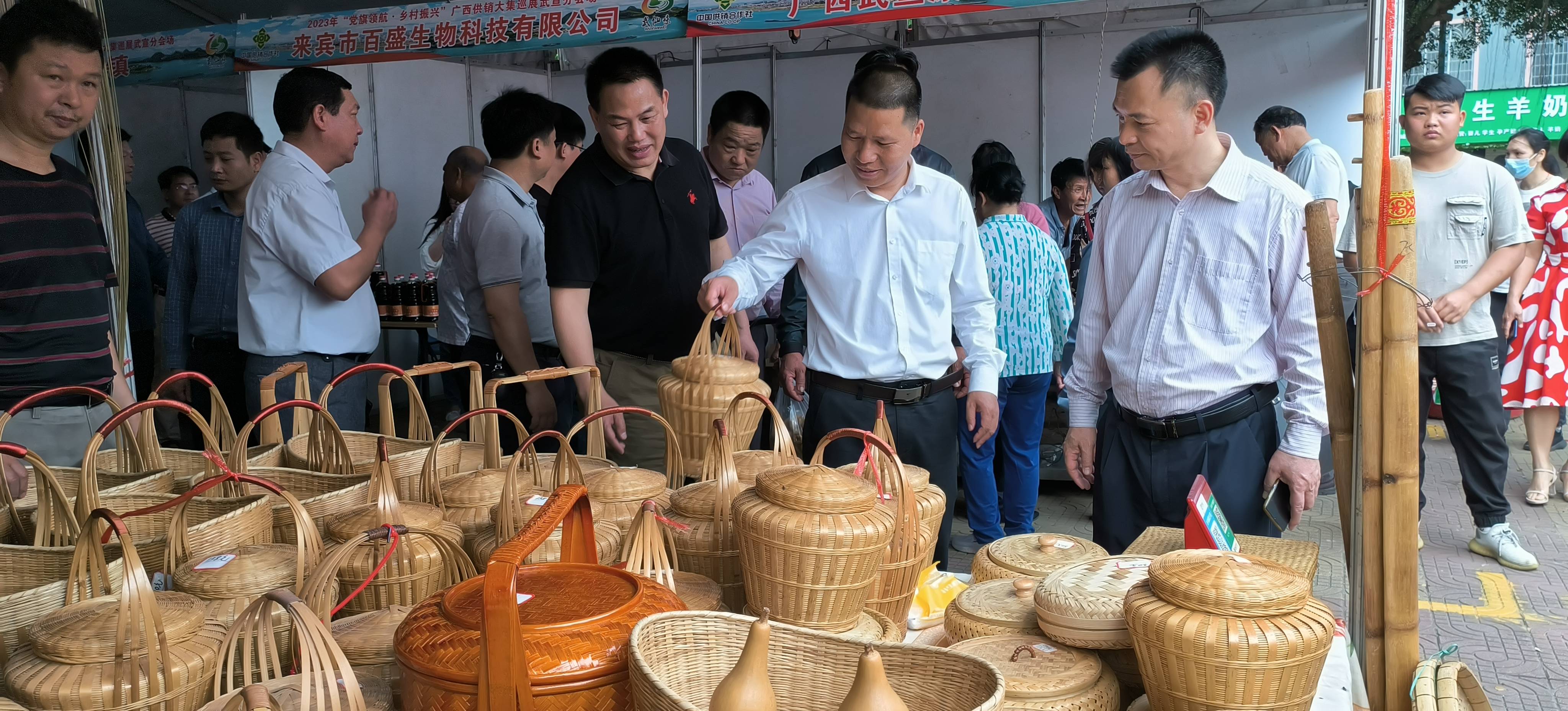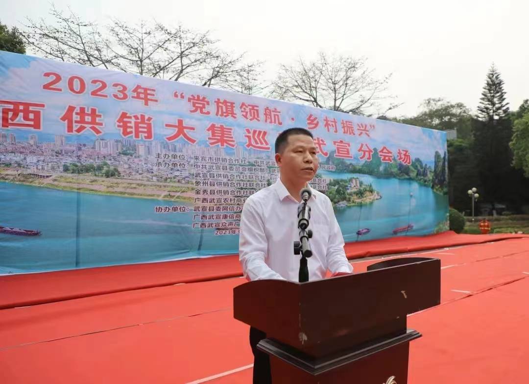 3月23日上午10时,由来宾市供销社、中共武宣县委员会、武宣县人民政府主办,武宣县委组织部、武宣县乡村振兴局、武宣县供销合作社联合社、兴宾区供销合作社联合社、象州县供销合作社联合社、忻城县供销合作社联合社、金秀县供销合作社联合社、合山市供销合作社联合社、广西武宣农村商业银行股份有限公司承办,武宣县委网信办、武宣县融媒体中心、广西武宣康信商贸有限公司、广西武宣众声广告传媒有限公司协办的“党旗领航·乡村振兴”广西供销大集巡展武宣分会场农产品展销会启动仪式,在武宣县城马鞍山广场隆重举行。