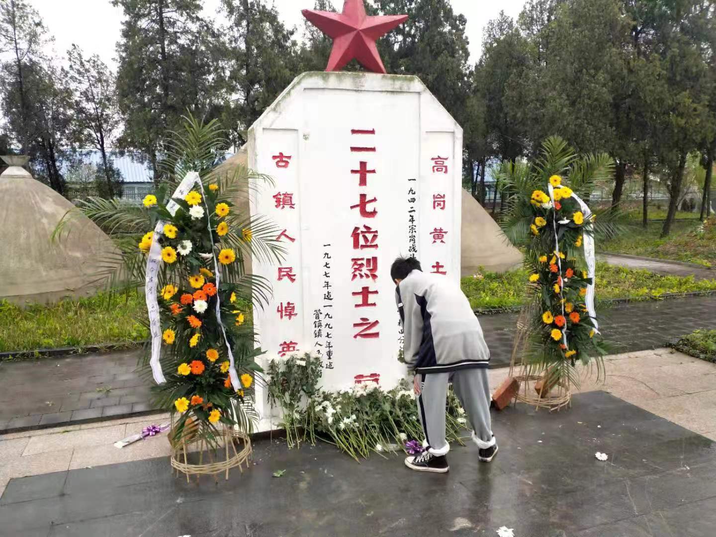 为了对学生进行爱国主义教育、感恩教育和励志教育,激发学生对革命先烈们的崇敬和怀念之情,树立正确的世界观、人生观、价值观,3月29日上午,盱眙县铁佛中学政教处组织400余名师生,徒步前往距离学校15公里的革命老区——宗岗烈士陵园,开展以“缅怀革命先烈,弘扬中国精神,争做强国少年”为主题的清明祭扫社会实践活动。 在烈士纪念碑前,优秀学生代表怀着崇敬的心情向革命烈士敬献花篮和鲜花。全体师生列队默哀致敬,瞻仰革命英雄,缅怀革命先烈,面对雄伟的纪念碑和鲜艳的五星红旗进行了庄严的宣誓。