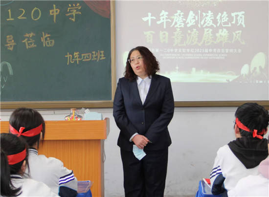 为推动沈阳市皇姑区委、区政府东部区域经济发展战略,在皇姑区基础教育集团化改革的大背景下,辽宁省示范性高中沈阳市第一二〇中学全面领办一二〇中学实验学校(原北塔中学),直接引领实验学校的教育教学改革工作。 在中考备考的关键阶段,一二〇中学的领导及名师走进实验学校、深入课堂,为初三年级备考加油助力。她们与初三师生亲切交流,指导教师坚定目标、科学备考;鼓励学生追逐梦想、积极迎考。面对纯真朴实的初三学生,她们饱含母爱的深情或以一二〇中学的办学成果激发学生的奋斗目标,或以一二〇学生的成长经历引领学生的拼搏精神,或以师长的身份讲述学习的方法、指导应试的技巧。学生们首次与一二〇名师零距离,认真聆听名师的教育思想,领略名师的教学风采,在拓宽视野的同时信心倍增、拼劲十足。