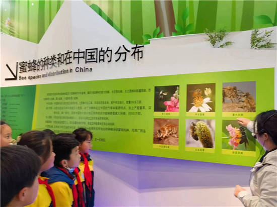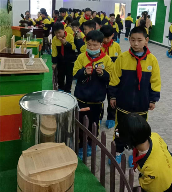活动中,讲解员通过图表、标本、实物以及景观模型配以声、光、电等手段,以生动直观的形式介绍了我国源远流长的养蜂发展历史、蜜蜂的生物学知识。随后讲解员带领孩子们参观了从古至今养蜂的工具,介绍了蜜蜂的习性,以及如何选好养蜂时期、选定对养蜂有利的场所等知识。