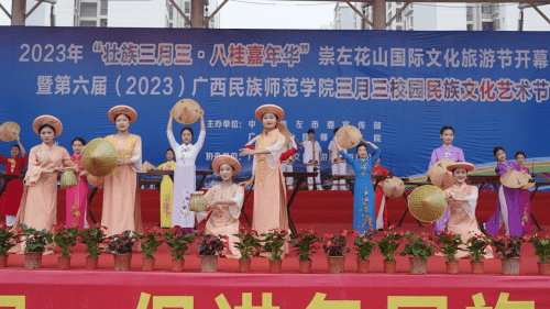 “潮起三月三 奋进新时代”,4月18日上午,“壮族三月三·八桂嘉年华”崇左花山国际文化旅游节开幕式暨第六届广西民族师范学院三月三校园民族文化艺术节隆重开幕。