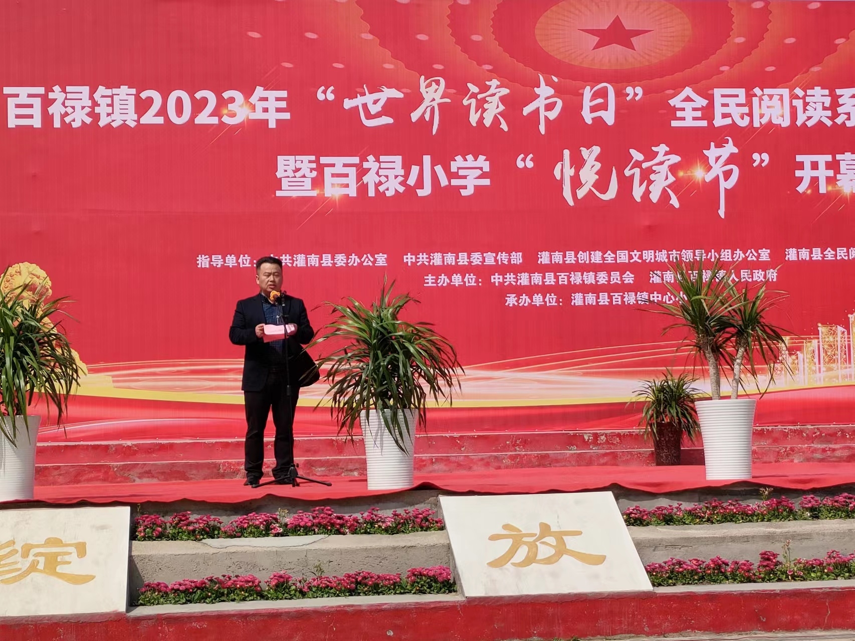 书香隽永,翰墨生香。为营造书香校园,传承华夏文明。4月21日上午,灌南县百禄小学隆重举行以“阅读启智慧 书香满校园”为主题的“悦读节”活动启动仪式。县委宣传部常务副部长徐茂干同志、百禄镇党委书记胥立中同志、县相关单位领导、百禄镇各界代表出席了活动。