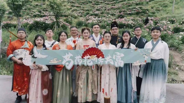 ![]() 芍药是花也是药,是怡人的好风景,也可以给百姓带来好“钱景”。据悉,新槽村芍药花节今年已经是第三次举办了,大片的梯田芍药花已经成了“网红打卡地”。通过芍药花节的举办,每天预计可吸引游客2000余人,这几天村里几家农家乐都是爆满的,还带动农副产品销售。”新槽村村委傅宁告诉记者。 ![]()