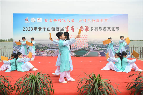 2023年4月21日,淮安市洪泽区老子山镇第一届“富有˙安淮”乡村旅游文化节在淮上明珠温泉度假村安淮楼西侧广场举行。开幕式上渔鼓舞表演,“老子道礼”表演等文艺演书精彩纷呈。现场还进行了渔耕文化展示,以传承洪泽湖渔民“结丝网”“编渔篓”“扎地笼”等渔耕艺术,现场展示“钩”“蓝”“卡”“簖”“罾”“网”等渔民捕捞渔具,让游客更多了解洪泽湖渔耕文化。此外,民间剪纸等也吸引了省内外游客驻足欣赏。