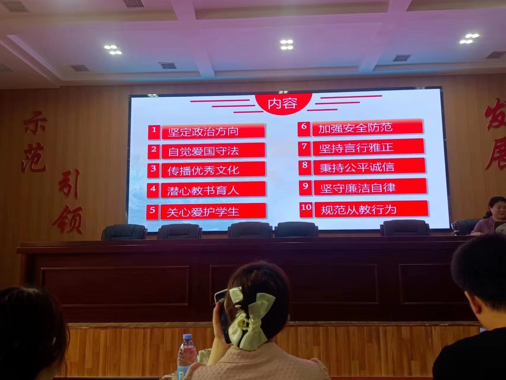 当天上午,我县参训的各学科教师在教师进修学校大教室认真聆听了肖四萍专家带来的《践行师德师风,做新时代“四有”好老师》的专题培训。她在报告中指出了什么是师德师风。为谁培养人?为党育人,为国育才,怎样培养人?新时代人才培养的行动指南,六个下工夫,九个要求,坚持党对教育事业的全面领导,把立德树人作为根本任务,靠谁培养人,靠教师。肖四萍专家通过课件形式向大家展示了党的领导人在二十大关于教育问题的论述中指出了为谁培养人,培养什么人,怎样培养人,靠谁培养人一系列问题及解决方法, 教师要带头建立社会主义核心价值观,弘扬真善美、权利、正能量,不得通过课堂、论坛、讲座、信息、网络及其他的渠道发表、转发错误观点。或编造、散布虚假信息、不良信息,落实立德树人,根本任务是遵循教育规律和学习成长规律,因材施教,不得违反教学规律,从而影响教学的本职工作。要关心爱护学生,加强安全规范,坚持严以养正,严慈相济,诲人不倦,真心关爱学生,严格要求学生,做学生的良师益友,不得歧视侮辱学生。她的专题报告赢得了在座老师的阵阵喝彩。