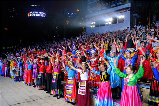 “千山唱来万水和咧,好日子在那歌里过…”第四篇章《传扬四方》在现场千人大合唱中,唱出了民歌文化的源远流长,唱出了人民群众的幸福生活。该篇章以回归民歌传承发展为内核,多维度呈现广西民歌底蕴。感染力强、声势浩大的台上台下互动拉歌,营造全民参与的浓厚氛围,并产生强烈的视觉、听觉冲击力,让现场观众沉浸在歌的海洋里,尽情地为人民放歌、为时代喝彩。