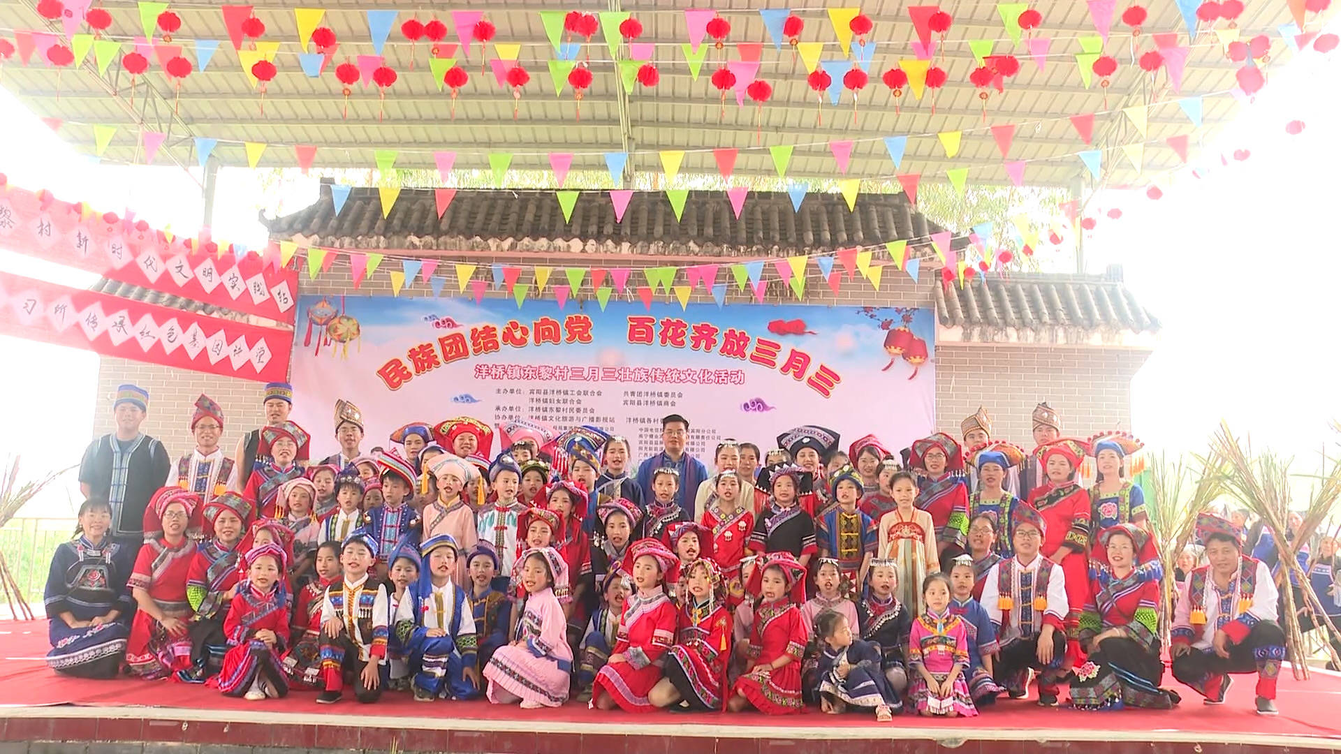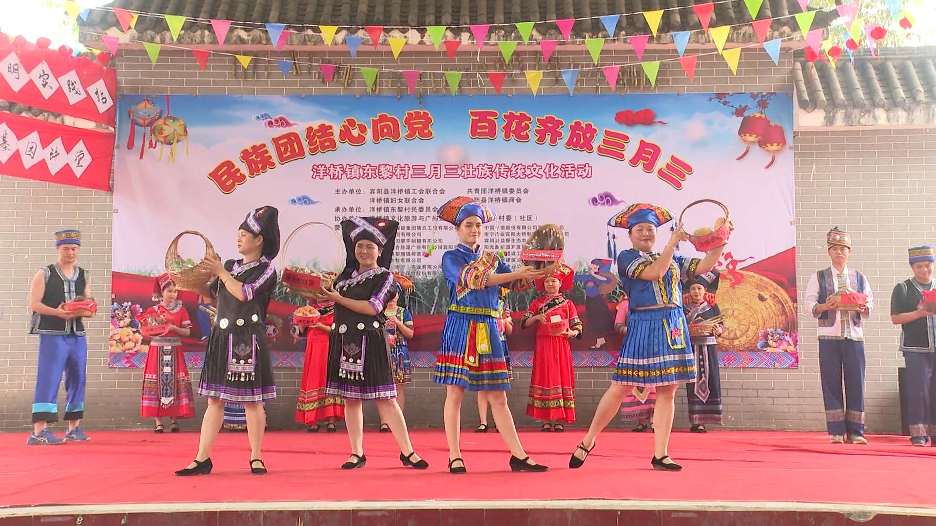 民族团结心向党,百花齐放三月三。4月21日,南宁市宾阳县洋桥镇在东黎村隆重举行首届三月三壮族传统文化活动,全镇人民群众身着多彩艳丽的少数民族服饰一起载歌载舞,欢声笑语尽情欢度属于自己的节日,在快乐中接力传承和发扬民族优秀的传统文化。