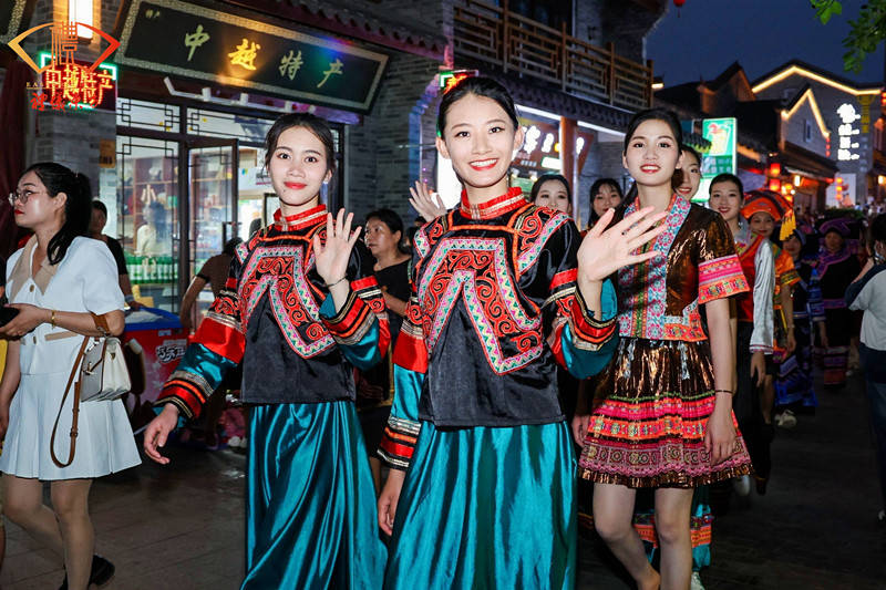 在启动仪式上,陈志鹏先生、李铭如女士、潘玲女士为本次文化活动周致辞,三位领导分别从节日的的祝福,对传统文化的发扬和传承,对未来美好生活的展望,加强与东盟伙伴的国际交流给予了美好的祝福。也给第19届中国-东盟礼仪大赛及文化活动周给予了美好的祝福,18届中国总决赛冠军选手贺琳同学与姚旺同学他们都是在去年“礼仪崇左”中国赛上获得的冠军,故地重游,感慨万千,他们也都献上了自己对大赛诚挚的祝愿。仪式上还惊喜邀请了一位当地壮族歌仙黄妈,以清越动人的山歌唱响了我们第19届中国-东盟礼仪大赛的民族旋律!期间大赛选手共同参与了太平古城华服汇巡演活动,向游客展示了中华民族传统服饰的多姿多彩。