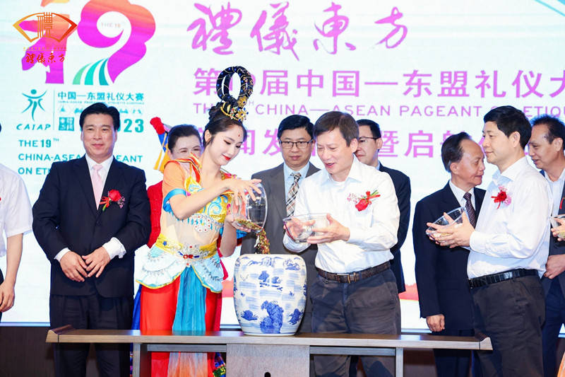 4 月 26 日下午,“礼仪东方”第19届中国-东盟礼仪大赛新闻发布会暨启航仪式在南宁启动。 百多名领导嘉宾、媒体界的朋友和各界人士欢聚一堂,共同见证2023“礼仪东方”第19届中国-东盟礼仪大赛新闻发布会暨启航仪式在南宁启动。