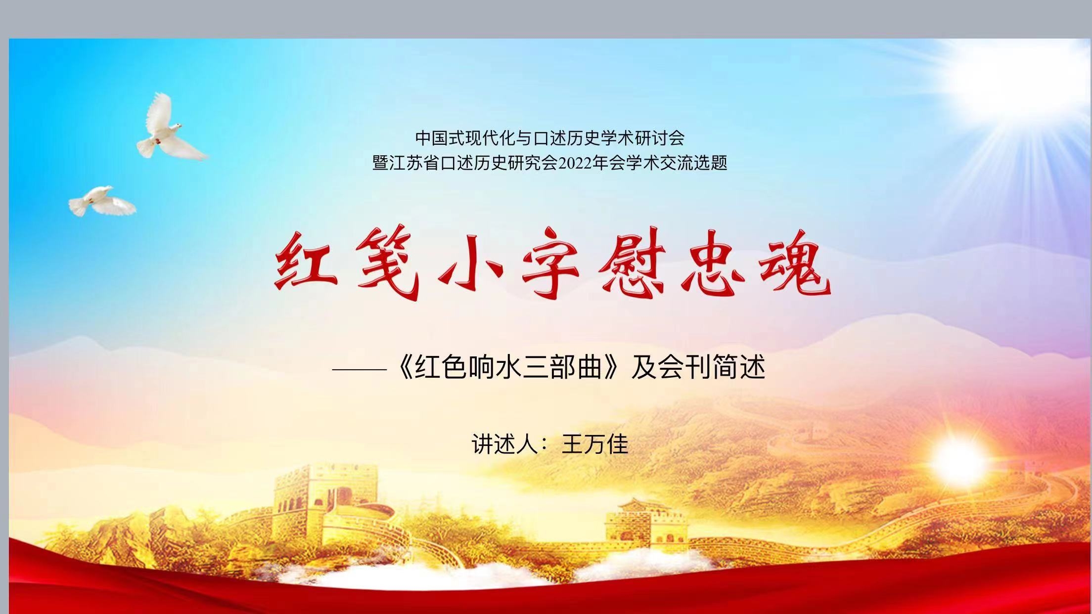 ![]() 跨时空穿越,感受沧海桑田历史巨变。江苏省响水县作为参会不多的县份,该县新四军研究会常务副会长王万佳在会上作了《红笺小字为忠魂》的专题学术交流发言,讲述了响水红色故事,交流了口述史《红色响水三部曲》和《红色响水》等研究成果。 ![]() 新出版的《响水红色地标》《响水英烈风采》《响水烽火岁月》组成的红色响水三部曲,以老兵和知情人的口述为史料,以纪实文学的形式,记录了响水100多年来的革命历史,全书100万字,近200多帧历史图片。慎终追远,回望百年,彰显着革命老区的地域激情和百年荣光,是对广大人民特别是青少年进行理想信念和爱国主义教育的生动教材。 ![]() 响水县新四军研究会花费五年心血,抢救挖掘出来的响水革命老区红色口述史最新成果——《红色响水》18册合订本, 120万字。 持续讲好“红色故事”,为乡村振兴的中国式现代化培根铸魂。响水县新四军研究会口述史研究成果受到与会专家学者的好评和关注。 ![]() 会议期间,响水县新四军研究会常务副会长王万佳、副秘书长唐树华、何秀华将革命老区红色口述史最新研究成果——《红色响水三部曲》一书和《红色响水》合订本捐给了国家综合档案馆——江苏省档案馆,江苏省档案馆领导向响水新四军研究会颁发了收藏证书。 ![]() 根据议程,本次会议还围绕新中国工业建设口述史与社会主义精神传承、中国早期现代化与张謇研究名家口述历史等主题做了深入交流,并就采录对象选择、访谈技巧、采集标准、语境特色、宣传拓展等多方面进行了理论探讨。