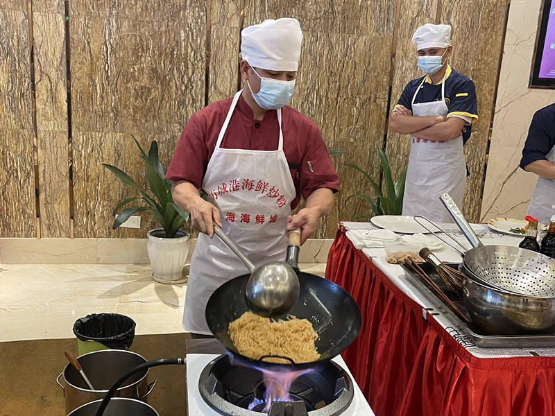品鉴会现场,参选海鲜炒粉产品经各大厨匠心制作,鲜、香、清甜、可口、色香俱佳的海鲜炒粉让嘉宾、评委嘉宾们饱有口福。海鲜炒粉的配料:香菇、豆芽、红萝卜、蟹柳、海米、葱花、大蒜等加上各种海鲜,如:鱿鱼、螺、蟹、虾、鲍鱼等美味至极,营养丰富,令人回味无穷。