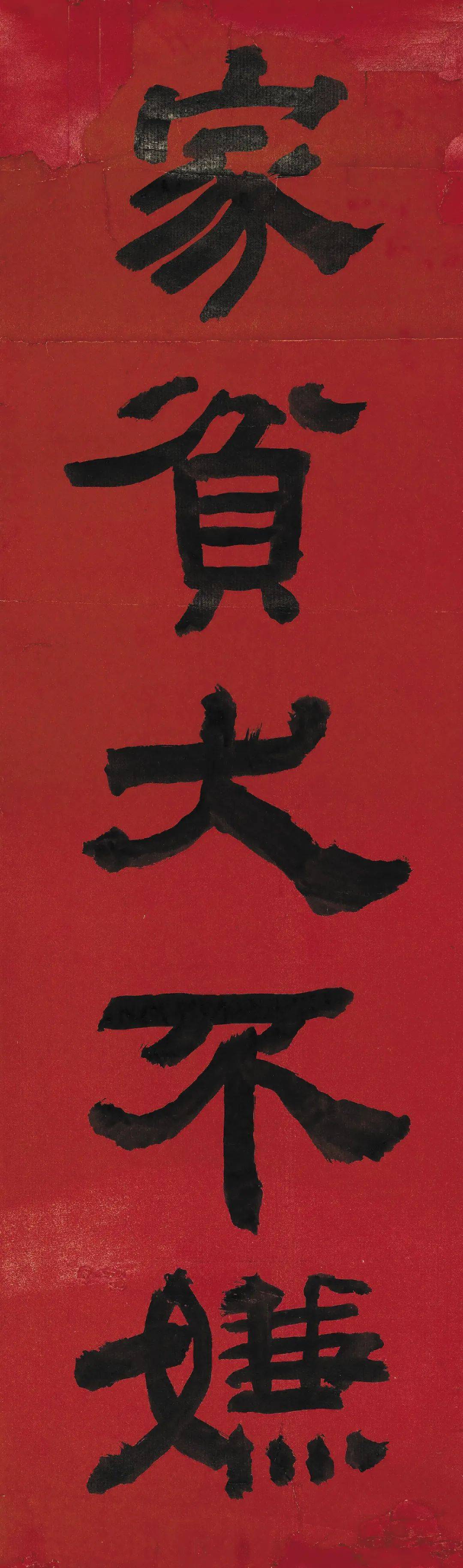 甲戌(1994)新年先生恵示手札称,"狗年,未闻有拍狗屁者,我倒戏作四句,录呈一笑:‘支辰十二犬今年,宠物声高价万千。无怪豪华歌舞地,女郎抱处望如仙。但说的都是洋狗,然则草狗哪里去了呢?不说也罢了。"在他眼中,生活无处没有诗材。今见他书两联,均与狗有关,其一:"室雅何须犬,字肥豈必猪",书法写得肥,素有"墨猪"之讥,然东坡有"肥瘦短长各有态,玉环飞燕谁敢憎?"句,此联看似粗俗,实乃雅切,含意深刻,表明了自己的书学观点,与东坡诗句有异曲同工之妙。其二:"腊尽春先在,家贫犬不嫌"则将狗之忠诚,刻划得淋漓尽致矣!先生主张对联要反对方妙,此处的"春"对"犬",虽同为名词,但词义不同,属反对之一例。