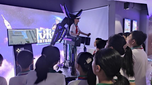 结束了40分钟的科普讲座后,同学们来到位于育成中心四楼的先进制造及科技成果科普基地进行参观。在这里,同学们看到了玛瑙、水晶、岫玉、青金石、冬陵石、黑曜石、紫萤石,还有非洲松、青海翠、印度绿玛瑙等稀有的七彩矿石;邂逅了智能机器人“悟空”,并与它进行有趣的对话。“悟空”按照小客人们的语音指令载歌载舞,还顺从地打起了太极拳。看着它那一招一式像模像样的样子,围观的同学们都忍不住笑了。“给我打印一个小人”“给我打印一个笔筒”“我要一个爱心”……在3D打印机前,张荣进工程师正忙着为同学们展示3D打印过程。一根根橙色、绿色、紫色的条形材料进入打印机,就可根据设定好的信息打印出成品。同学们惊奇地看着手中的3D产品,简直不敢相信自己的眼睛。这神奇的机器居然能以数字模型作基础,使用特殊的蜡材、塑料或金属粉末等材料进行复合,就制造出一个实实在在的三维物体。在这里,每个同学还有机会体验VR。当戴上VR眼镜时,体验者便沉浸在虚拟影像的世界中,在三维立体空间里体验来自视觉、听觉、触觉等感官精确模拟的奇妙。