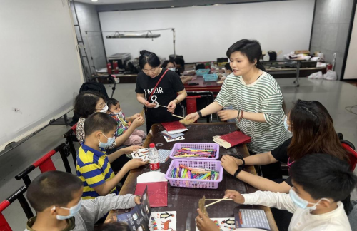 皮影制作工作坊 随后还安排了皮影DIY手工制作。在老师的指导下,大家拿起画笔进行绘画创作,为人物画上精美的妆容,给漂亮的衣衫涂上鲜艳的色彩,一个个惟妙惟肖的彩色人偶就展现在眼前。孩子们一边操纵着人偶在白色幕布上翻腾跳跃,一边还配上了有趣的台词,“吃俺老孙一棒!”“不好了大师兄,师傅被妖怪抓走了。”现场十分热闹。