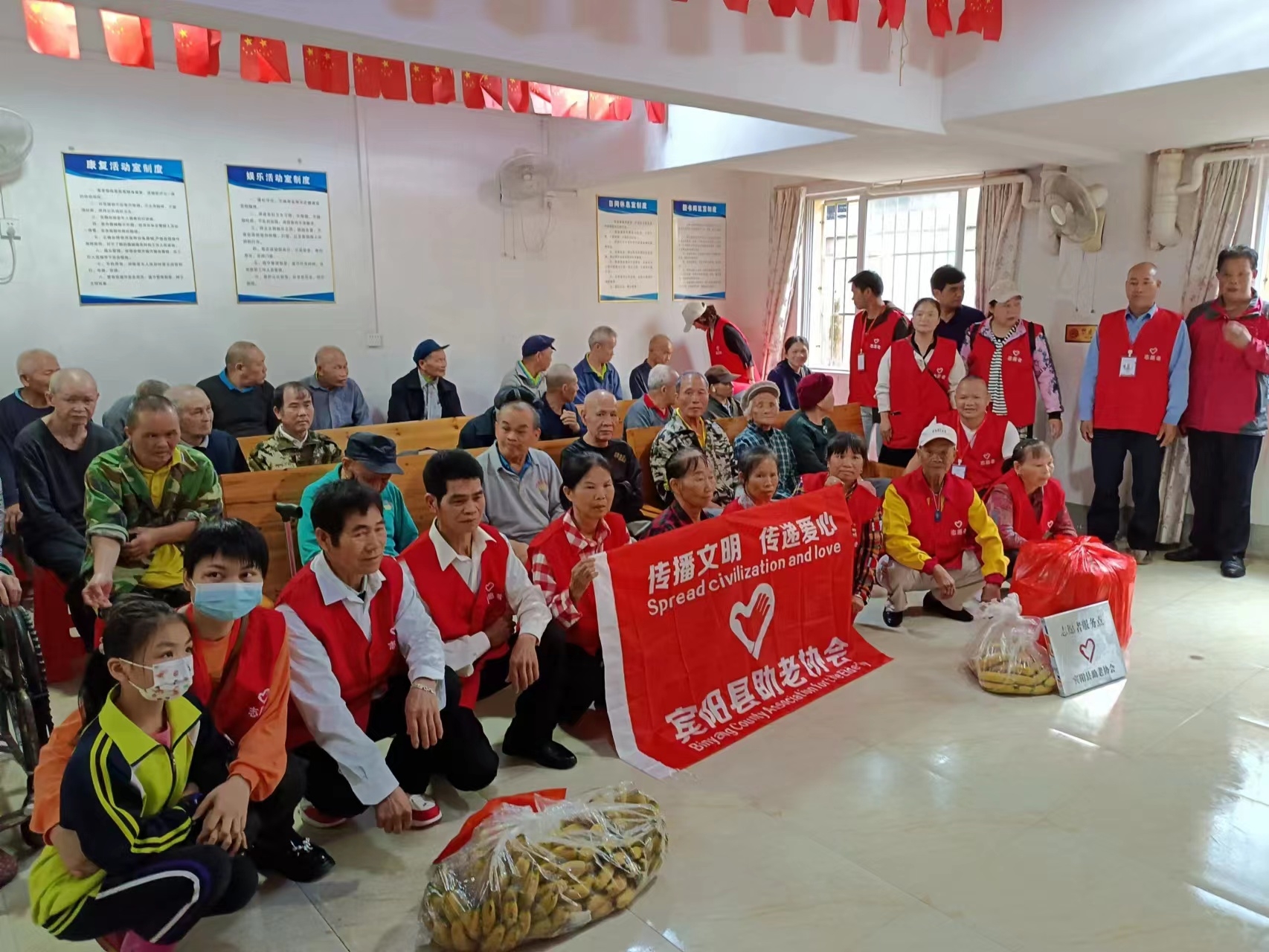欢迎社会各界爱心人士加入我们宾阳县助老协会关爱高龄老人,关爱抗战老兵,关爱退役老兵,关爱孤寡老人,关爱残疾老人,关爱空巢老人,传承雷锋精神,传承孝老爱亲精神,传播文明,传递爱心,传递正能量,践行社会主义核心价值观!