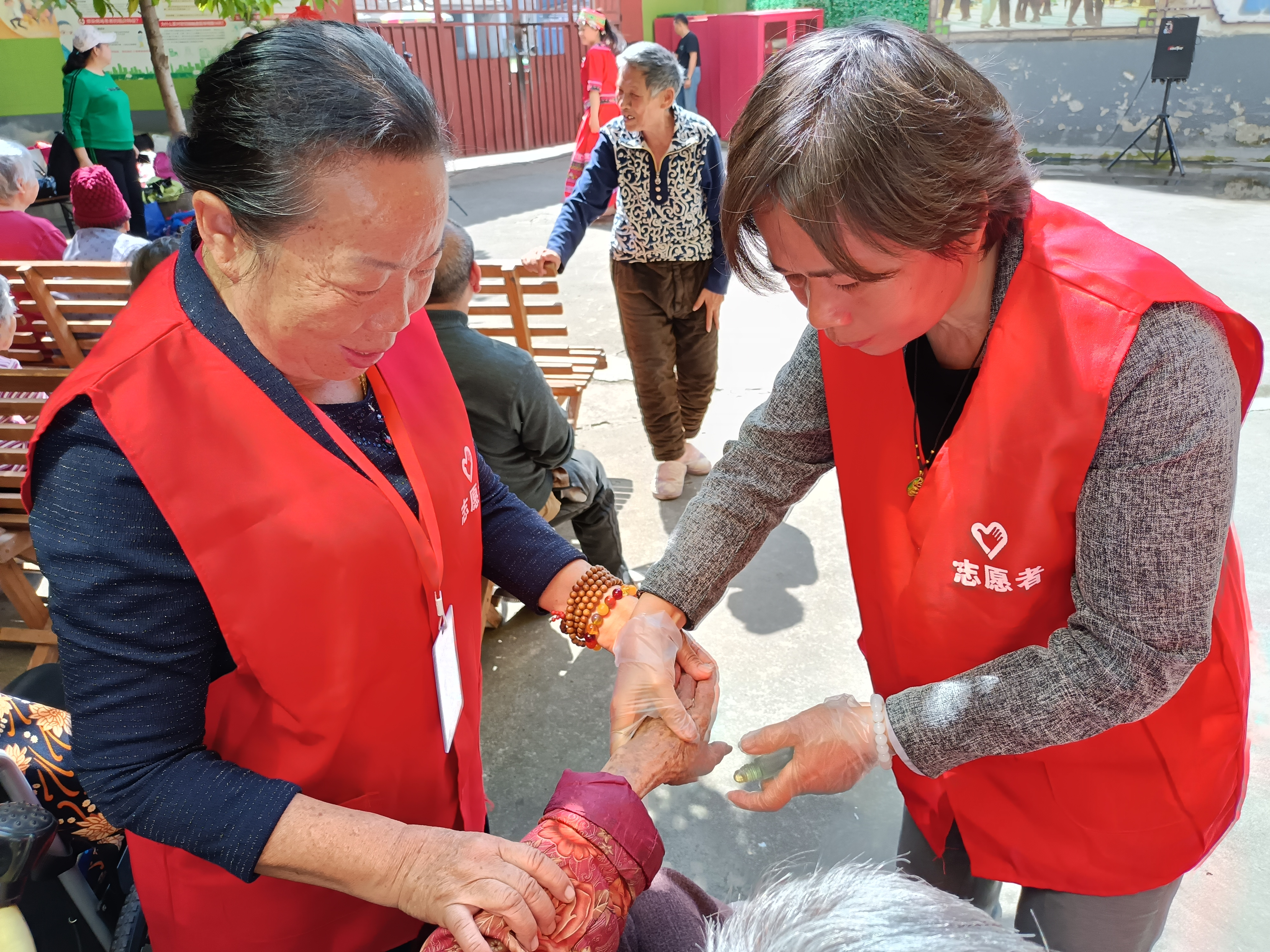 活动内容:在大桥镇敬老院给高龄老人表演节目:唱歌,跳舞,公益演出,给高龄老人理发,剪指甲,洗头,洗脚, 量血压,陪老人聊天等志愿服务。