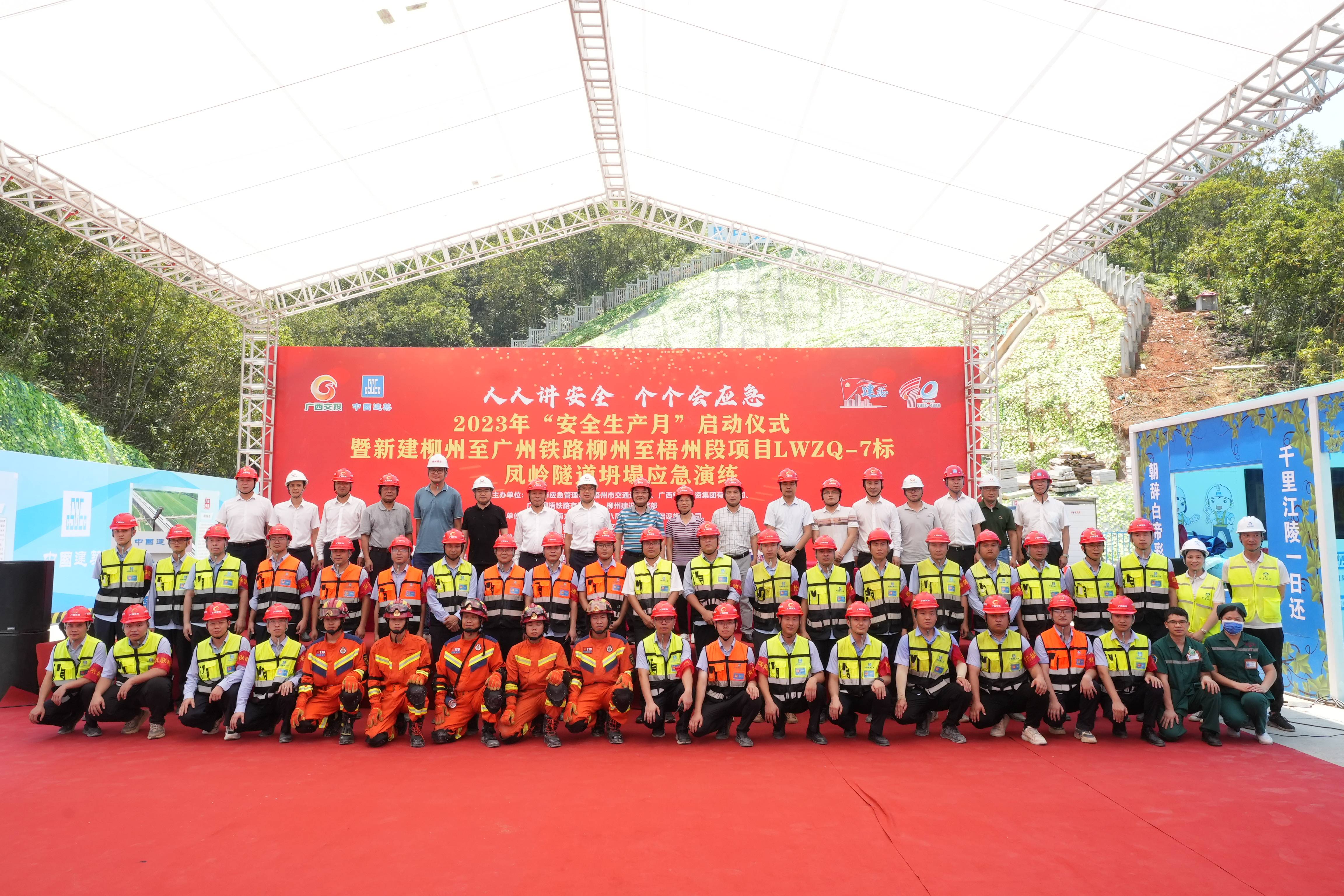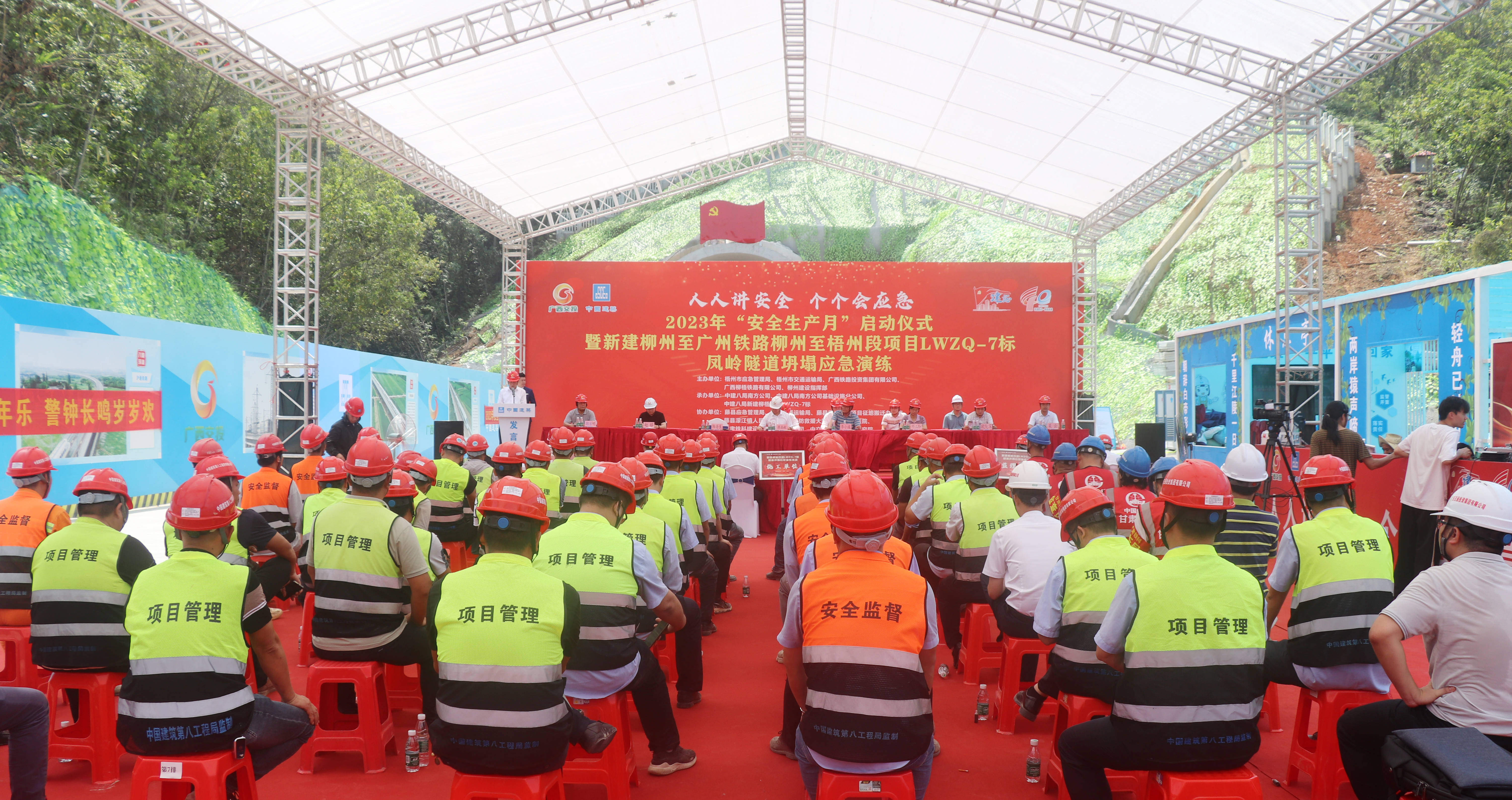 ——柳梧铁路七标2023年“安全生产月”启动仪式暨隧道坍塌应急演练顺利举行 6月2日,中建八局柳梧铁路七标2023年“安全生产月”启动仪式暨隧道坍塌应急演练在柳梧铁路凤岭隧道顺利举行。