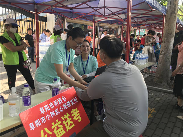 为了即将高考、中考的学子们提供更加温暖的支持,阜阳市新联会、阜阳市小树皮心理研究所、阜阳心理卫生行业协会组成了一支“特殊志愿者队伍”,他们通过电话、网络热线的形式提供一对一心理疏导,专门服务于考生和家长。除此之外,他们还在考区定点提供现场公益心理咨询服务和心理体检服务,十多辆社区矫正志愿者的爱心车也为有需要的考生和考生家长提供了公益服务。自五月份开始,阜阳市新联会、阜阳市小树皮心理研究所、阜阳心理卫生行业协会就开通了心理服务热线,并走进西湖中心校、马寨中心校、开发区一初、程集中心校等学校,为即将中考、高考的学生送去一堂堂精彩的减压讲座和放松训练,受到广大师生的欢迎。这支特殊的志愿者队伍的脚步继续前行,并将在高考中考的考后,继续服务于学生,为双树双建、为新时代建功立业献上一道美丽的风景!