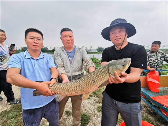 渔塘周边秀丽的田园风光和严肃紧张的比赛相映成趣,形成了一道和谐美丽的风景。选手们在清新的大自然中愉悦了心情,也在有趣的比赛中锻炼了身体。 最终,经2个小时的角逐,比赛落下帷幕,各选手陆续拿着自己的鱼篓到达指定处称重。最终来自淮安联通分公司的三名选手斩获了此次比赛总重量团体冠军、淮安铁通分公司的胡状状荣获个人单尾重量冠军。